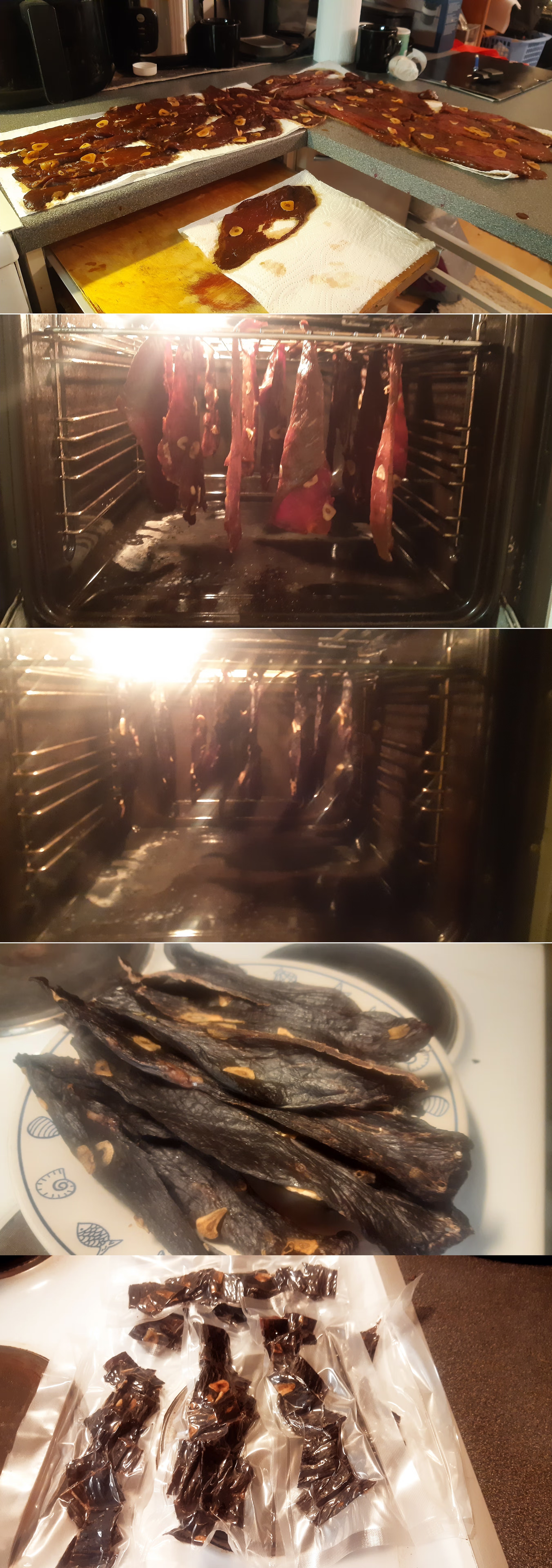 Marinaadista en huomannu ottaa kuvaa ku olin humalassa, mut se oli vain ohuiksi lastuiks leikattua valkosipulia ja 50:50 vettä ja soijakastiketta ja yön jääkaapissa.